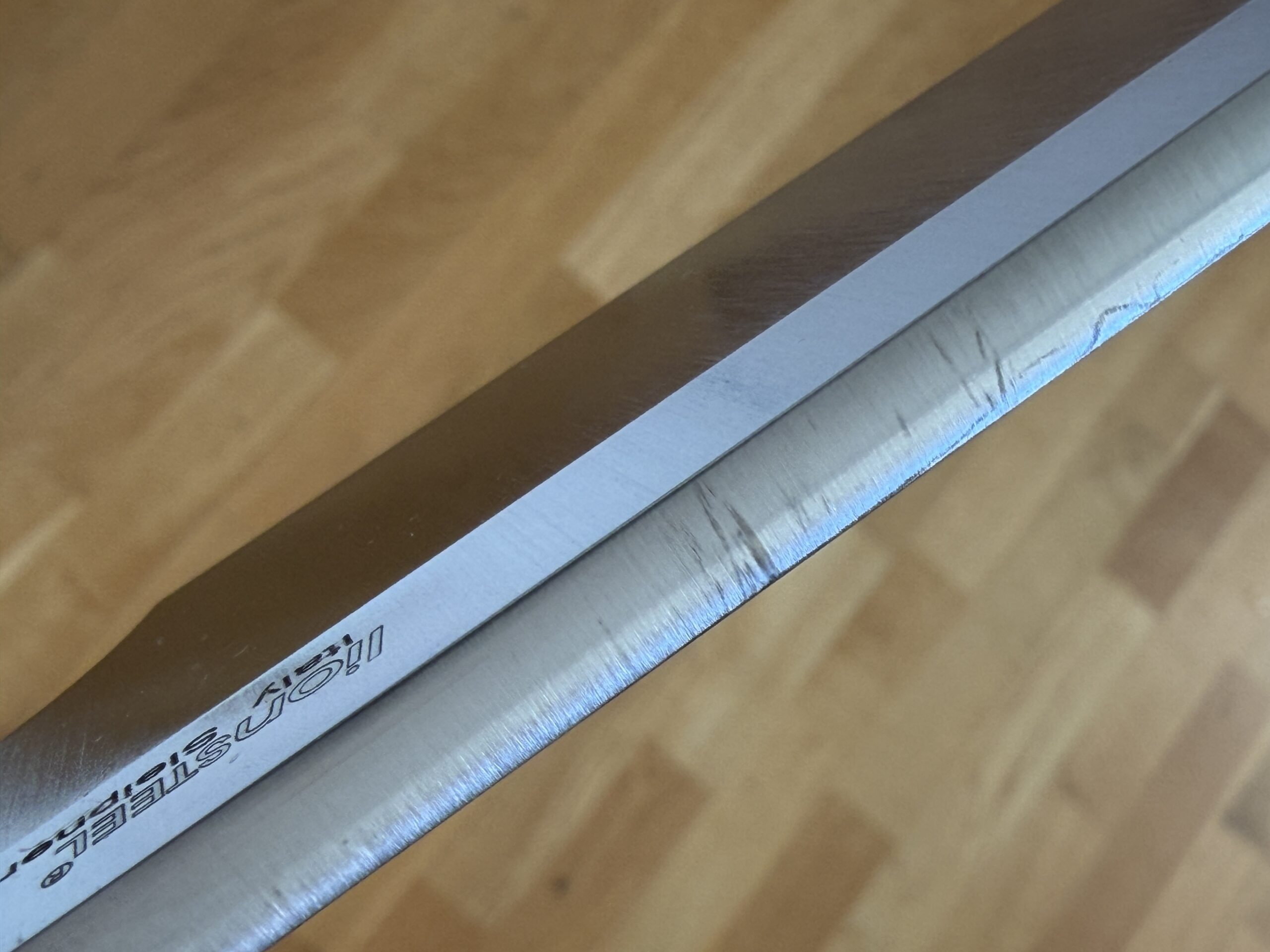 Allt är dock inte en dans på rosor. Det finns en sak jag stött på som jag inte riktigt uppskattade. När jag processar neutrala råvaror och frukt, uppstår en tydlig metallisk smak. Det är ett fenomen jag oftast förknippar med enklare kolstålsknivar, inte med den här typen av stål. Det är ingen “dealbreaker” för mig, men det drar ner helhetsupplevelsen något vid matlagning. Min teori är att detta är en inkörningsfas, och jag hoppas att det lägger sig med tiden när bladet får en naturlig patina.