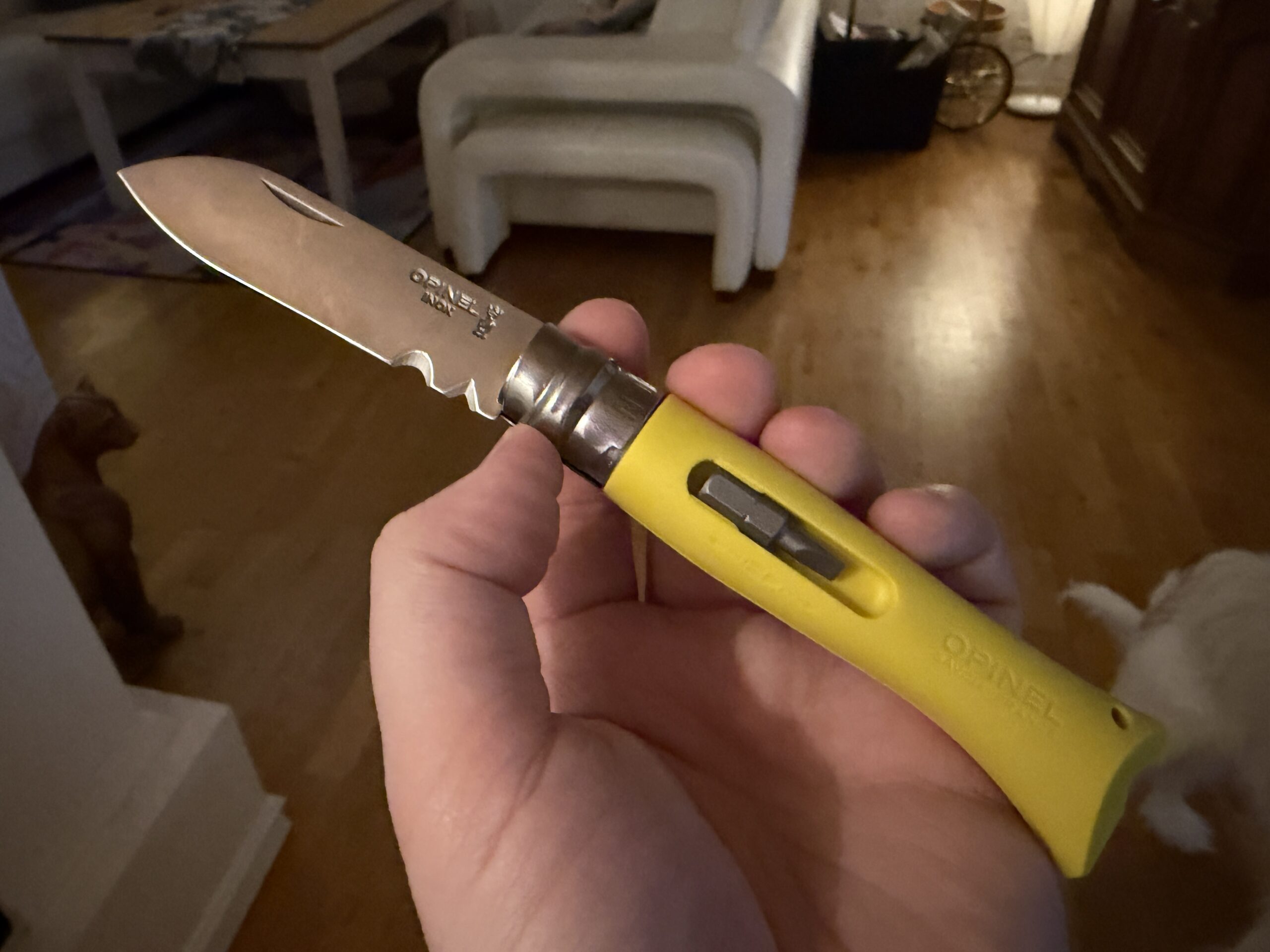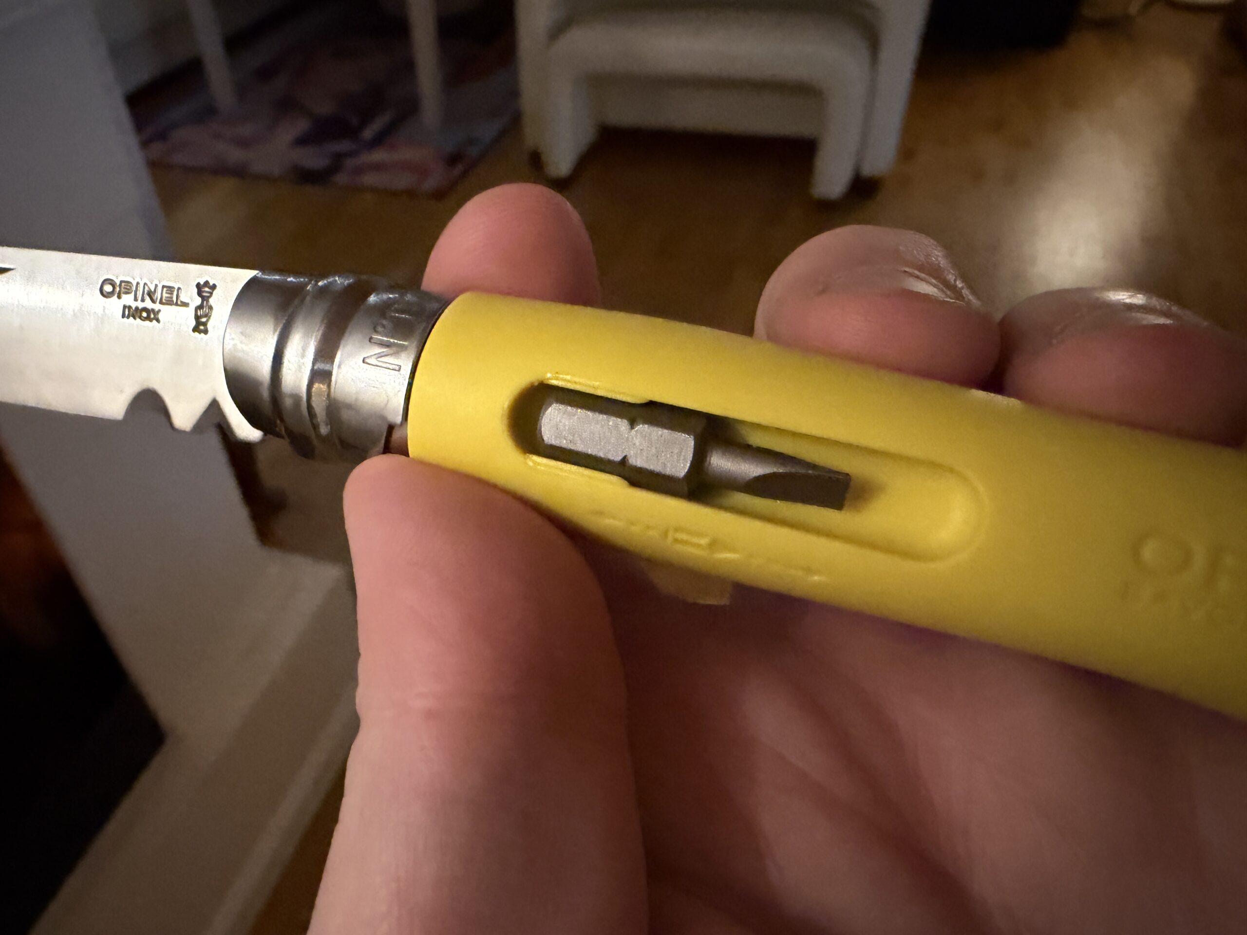 Opinels val att använda friktion för att fästa bitsen på handtagssidorna känns också väldigt udda. Efter ett eller två år så lär ju dessa bits ramla ur hållaren om man skakar på kniven lite. Jag förstår inte hur dom tänkte här.