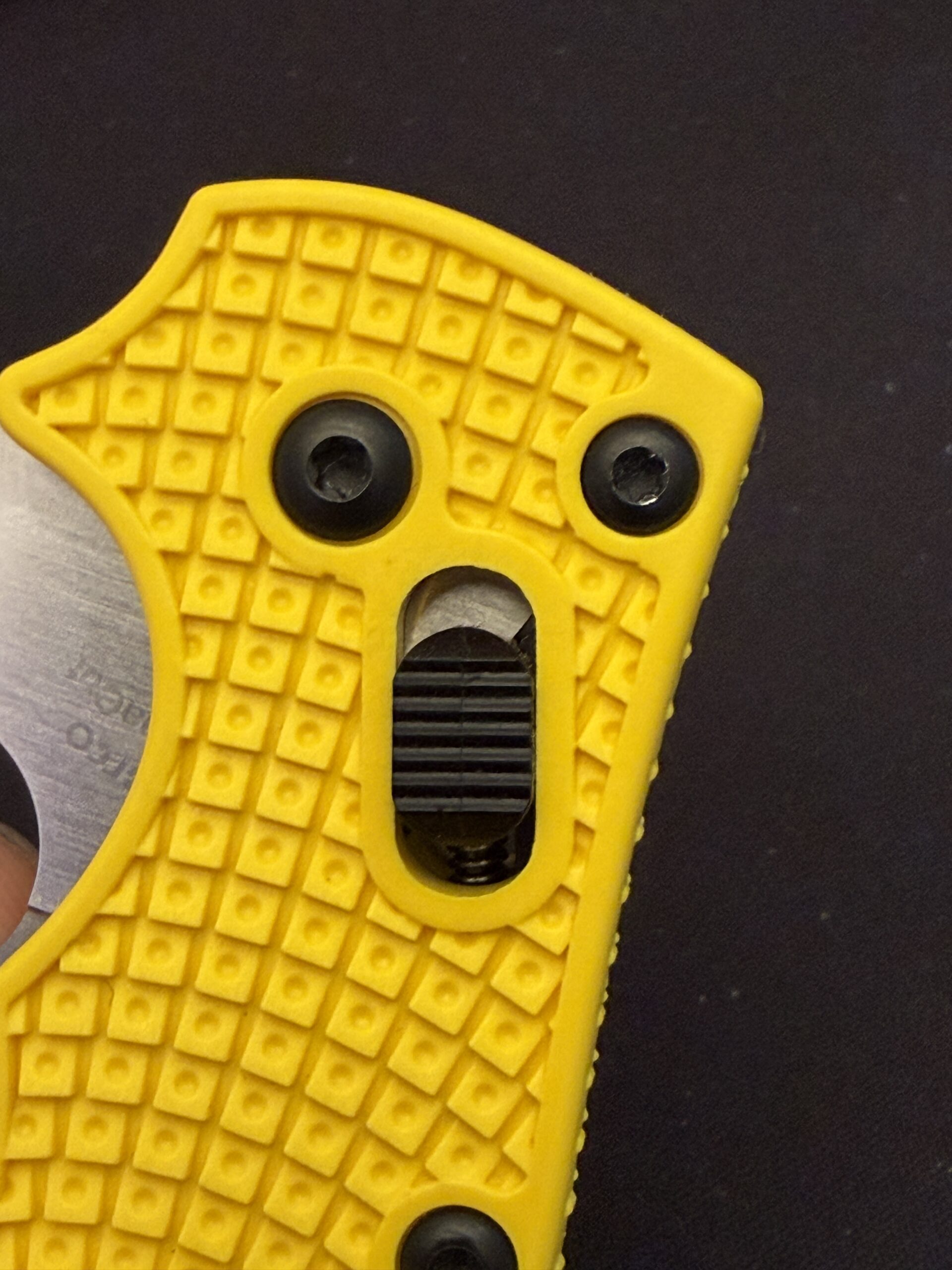 Det är ju rätt så charmigt att få en sådan personlighet på ens kniv, förstås. Men det är samtidigt ganska oroväckande att det ser ut som att kniven verkar ha fullständig panik. 🤣