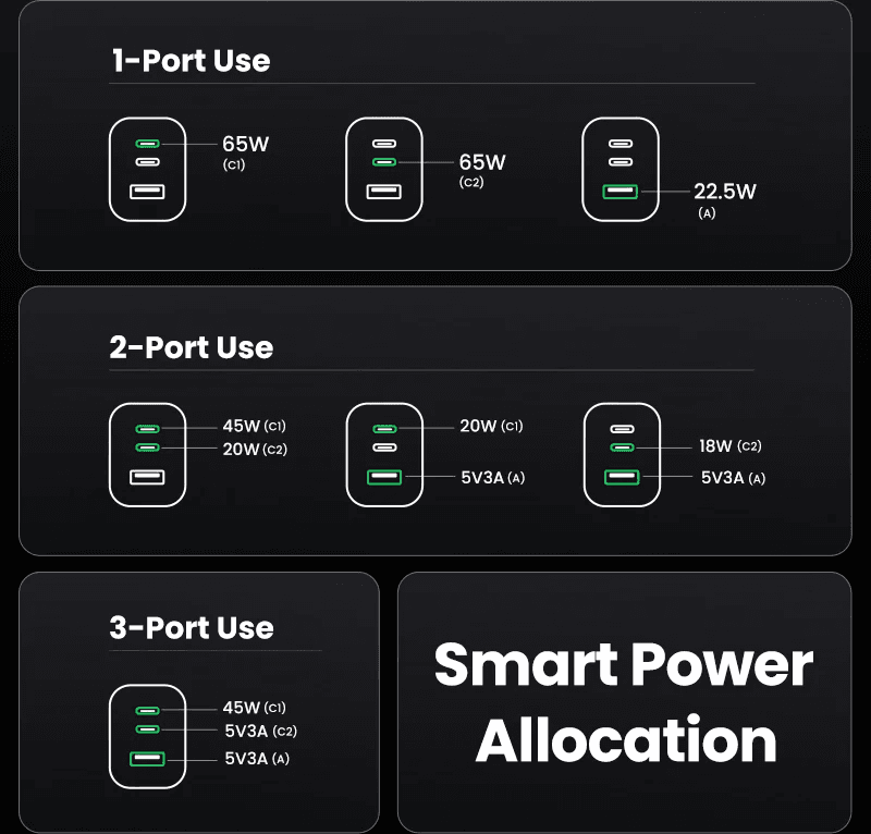 I samma inlägg så rekommenderade jag att man börjar titta på nya laddare om man är ute efter absolut bäst prestanda, vilket var ett råd jag tog själv och köpte en UGREEN Nexode Pro 65 watts GAN III laddare. Anledningen var dels att den erbjuder två USB-C och en USB-A samtidigt, dels stödjer den PD3.2 och följaktligen den snabbaste laddningen man kan få på iPhone 17 Pro Max. Varför det är viktigt att den stödjer tre kablar på samma gång beror på att jag ofta laddar min Apple Watch, mina AirPods Pro och min iPhone 17 Pro Max samtidigt.
