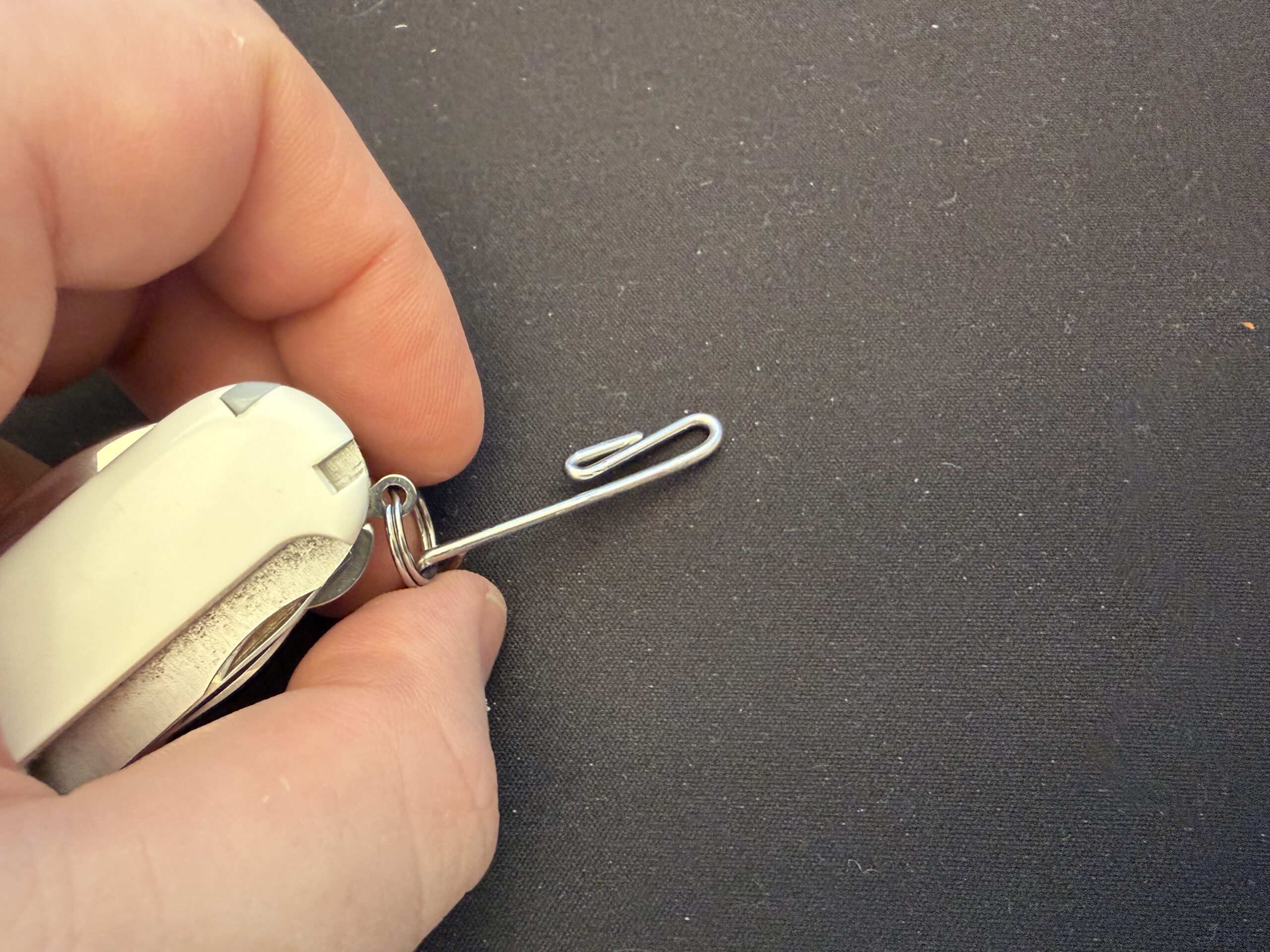 En annan detalj som ofta glöms bort är hur man faktiskt bär med sig kniven. Det finns inget mer irriterande än en fickkniv som lägger sig på tvären längst ner i fickan tillsammans med nycklar och annat. Det skapar obalans och gör det svårt att fiska upp verktyget snabbt. Min lösning är att montera på ett diskret fick-clip, en så kallad suspension clip. Genom att fästa den i knivens nyckelring kan jag hänga den i kanten av fickan. Det gör att kniven hänger lodrätt och alltid finns lättillgänglig på samma ställe varje gång jag sticker ner handen. Det sparar både på tyget i byxorna och på tålamodet.