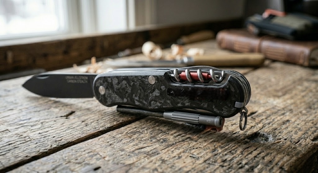 Men det stoppar inte där. Det som verkligen är revolutionerande är uppbyggnaden och verktygen. Victorinox har utvecklat en teknik där de har bytt ut dom traditionella skivorna i aluminium, som finns mellan verktygen i Swiss Army Knife modeller, mot laminerad kolfiber. Viktmässigt gör det kanske inte så mycket, men hållbarheten sägs vara upp emot 10 gånger högre, samtidigt som verktygen är otroligt smidiga och mjuka att öppna och stänga.